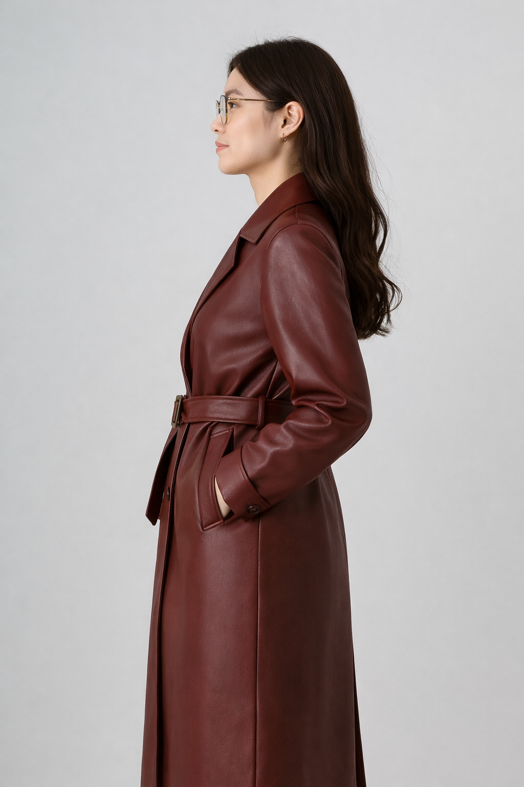 Elevate your autumn and winter looks with this elegant leather jacket coat.